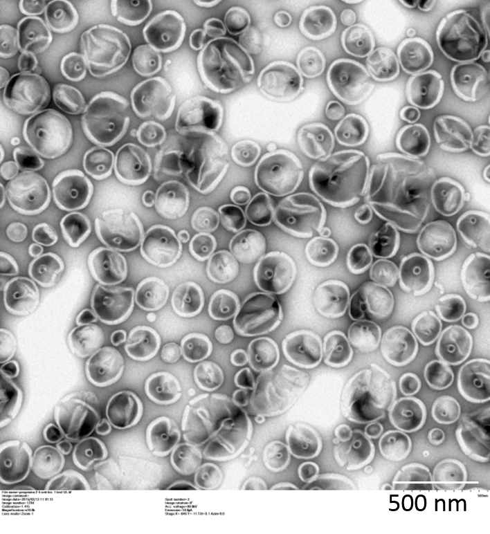 The IMRCP Laboratory in Toulouse, led by Anne-Françoise Mingotaud, tested UranyLess in comparison to uranyl acetate, which is at an acidic pH of 4 (seems to disrupt the molecular structure organization). They also compared observations using Cryo-SEM (scanning electron microscopy).